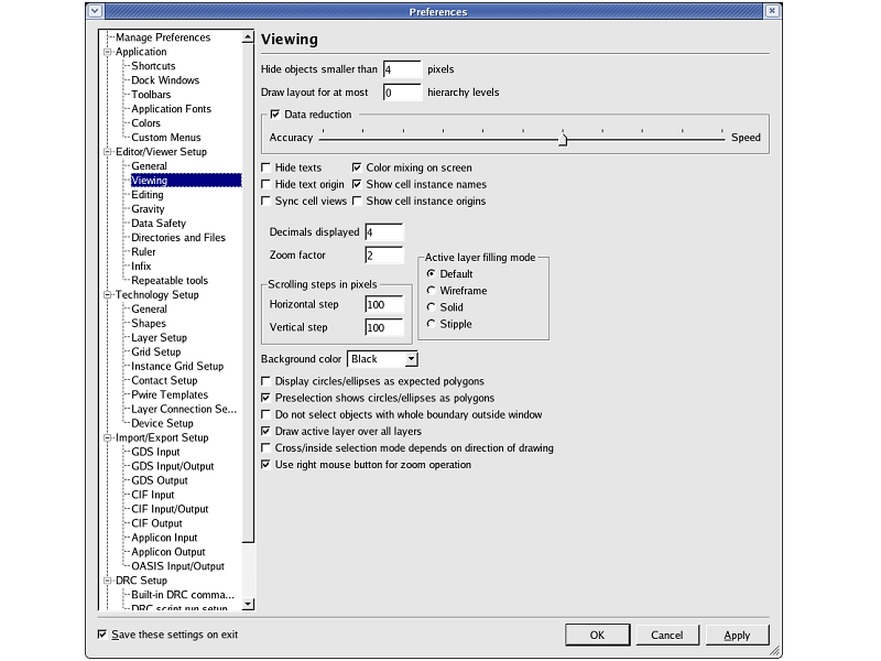 Layout drawing speed can be improved by limiting the size of objects and hierarchy levels. These can be set by the following options in the Setup->Editor/Viewer->Viewing page.