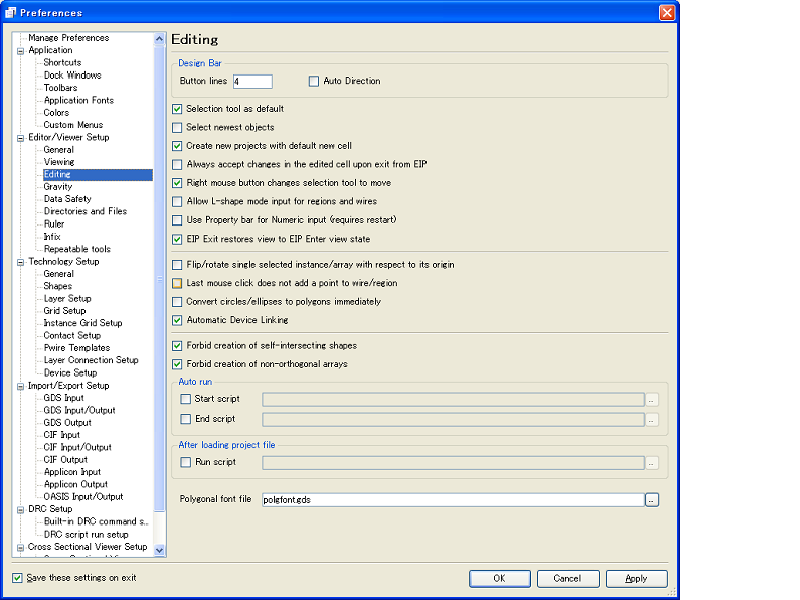 - Select Setup->Editor/Viewer to open the Preferences dialog.