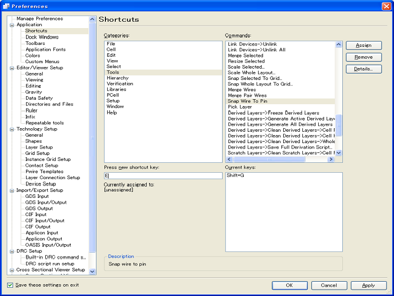 - Select "Tools" in the Categories list, and select "Snap Wire To Pin" in the Commands list.