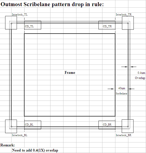 Figure 1 shows the specifications of the die frame. Figure 2 shows additional specifications of scribe lane and overlap.