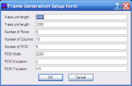 Figure 5 illustrates the input dialog window after the execution of the "generate" command. Figure 6 shows the layout of a 6x10 die array, with properly aligned frame and extension. This layout was generated automatically by the user-defined command. Note that the origin is set to be in the center of the whole layout.