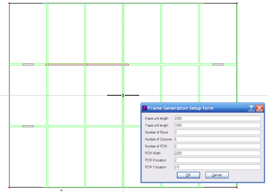 In the dialog window, the user can define the "Number of Rows", "Number of Columns" and "Number of PCM" to be 3, 6 and 2 respectively. These values will lead to the layout of a 3x6 die array , with 2 PCM patterns instead of 6.