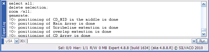 - Another useful feature of Expert that can assist in the creation of a LISA Script is the use of the Expert log window ( View->Dock Windows->Expert Log ). This window lists each command performed during the Expert session in the proper LISA (or JavaScript) syntax. Additionally, it provides warning/error messages and the suggestions if there are syntax problem during the compilation.