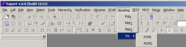 10 > &Routing // SCRIPTLANG = JS Pol&y = setLayer("Poly"); Met&1 = setLayer("Metal1"); Met&2 = setLayer("Metal2"); > Via P1M1 = box (-1, -1, 12, 12, "Poly"); box (0, 0, 10, 10, "Metal1"); box (4, 4, 2, 2, "Contact"); zoom; M1M2 = box (0, 0, 10, 10, "Metal1"); box (2, 2, 6, 6, "Metal2"); box (4, 4, 2, 2, "Via"); zoom; < < 11 > &TEST // SCRIPTLANG = JS GetPoint = pointUI(); < 12 > MOS // SCRIPTLANG = JS Pmos = box(0, 0, 5, 3, "P-Act"); box(2, -1, 1, 5, "Poly"); Nmos = box(0, 0, 5, 3, "N-Act"); box(2, -1, 1, 5, "Poly"); <