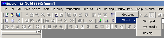 - Load "mux4.eld" project and open "TEST" cell