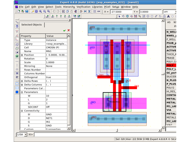 The example data also has a "PIP" cell, which can be used to check a cross section between two poly layers.