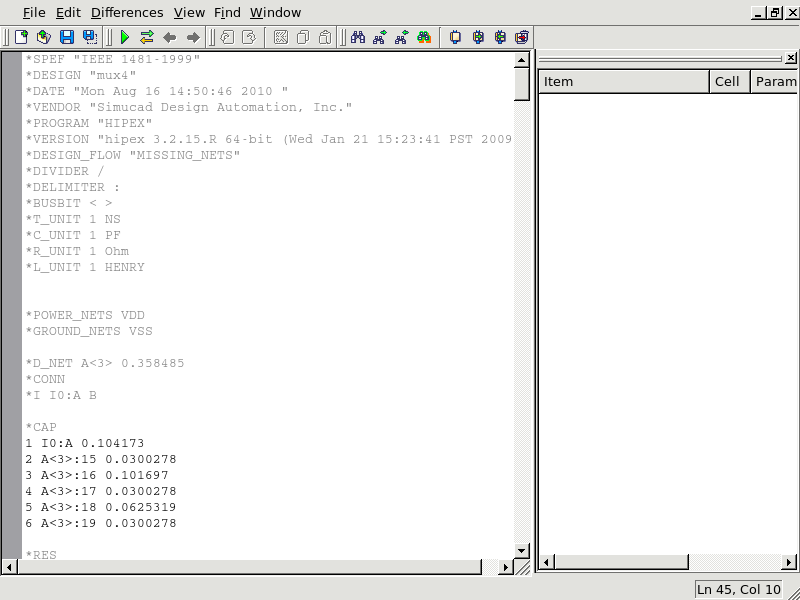 The progress panel, which these runs pop up, give you the option to open the netlist in the interactive Netlist Editor: This is only relevant to the spice netlist format; the DSPF/SPEF formats are only parasitic netlists and cannot support probing of the normal devices. The DSPF/SPEF netlists can instead be viewed from a separate menu entry, eg. Verification --> Extraction --> Hipex-RC --> View DSFP Netlist ( figure3 ). The DSPF/SPEF netlists will be placed in an SPF subdirectory, or as set in the Netlisting setup page.