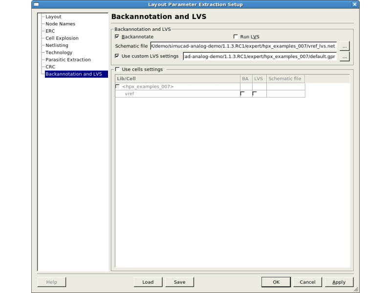 Select "Backannotation and LVS" in the "Layout Parameter Extraction Setup" window. Setup the schematic netlist and the LVS settings file as shown in figure3.