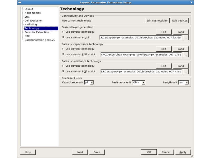 -Select the menu item Verification->Extraction->Setup , or click the "LPE setup" icon. Select "Technology" and specify the three files in "hipex" folder as shown in figure2.
