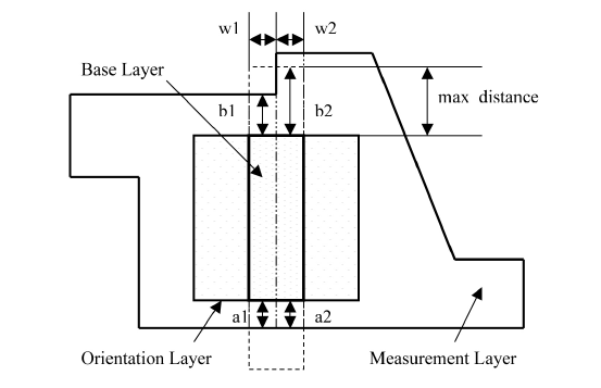 - the measurement layer can be any pin or auxiliary layer, or pin name. The measurement layer polygon must completely overlap the rectangular base layer object.